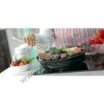 • یک درب آلوينيومي و پيرکس با دستگيره اولتراميد به طول 32 سانتي متر و عمق 15 سانتي متر ، تاج آلومينيومي داخل درب هم از خوردن حرارت به پيرکس جلوگيري مي کند و هم باعث مي شود حرارت داخل ظرف به گردش دربيايد.